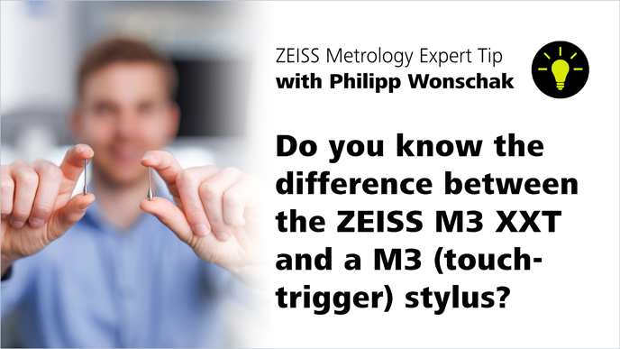 En este video de ZEISS Metrology Expert Tip, Philipp Wonschak explica detalladamente la diferencia entre los stylus ZEISS M3 XXT y M3 (touch-trigger) stylus. Además, responderá la pregunta: ¿Por qué un stylus M3 normal nunca debe usarse con un VAST XXT probe?