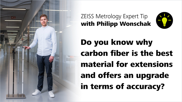 En este vídeo, nuestro experto Philipp Wonschak demuestra cómo puedes actualizar eficientemente tu dispositivo de medición ZEISS en términos de precisión. Esto se debe a que el material del que están hechas las extensiones tiene la mayor influencia en la precisión de la medición.