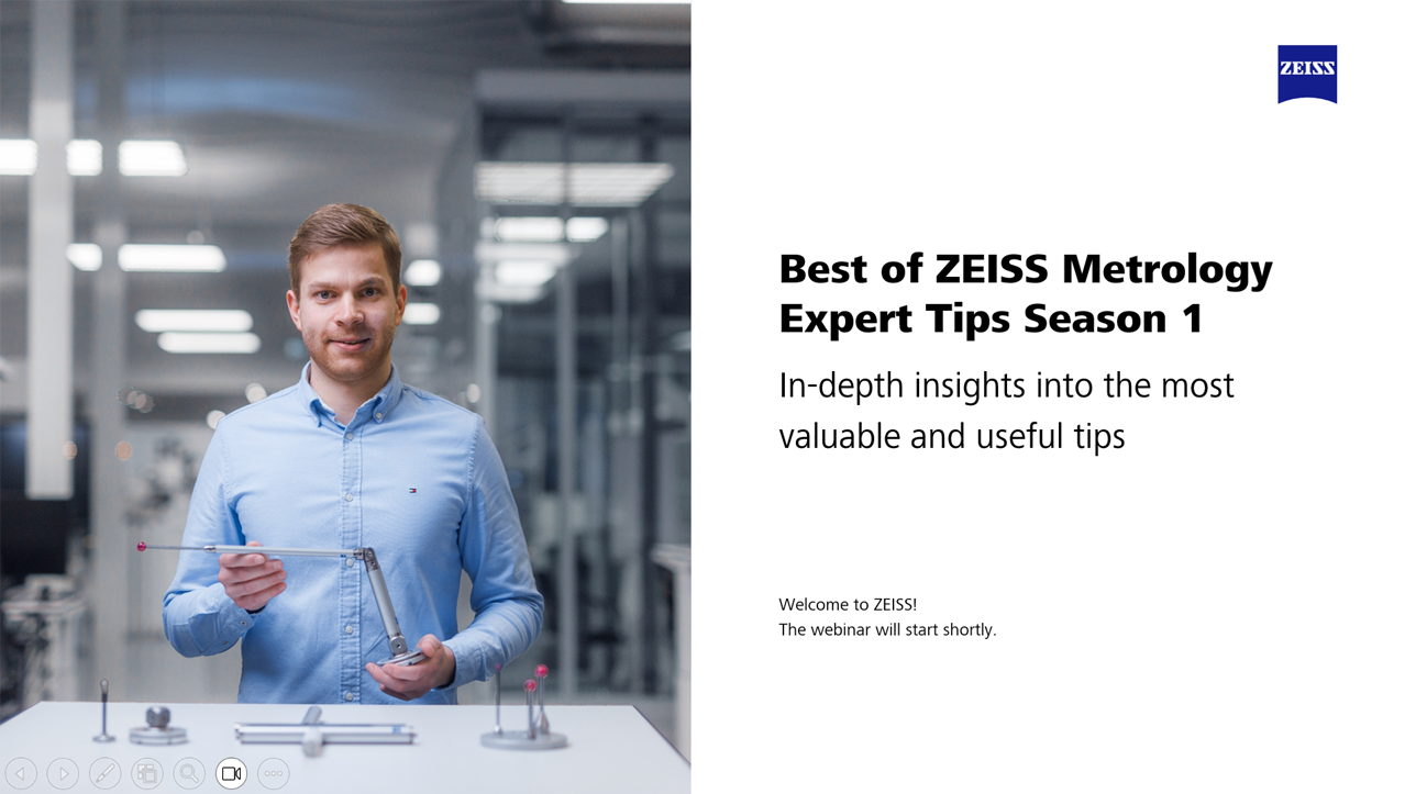 Ya sea que desee refrescar o profundizar su conocimiento, si desea maximizar el rendimiento de su máquina de medición por coordenadas, no te debes perder la grabación del "Webinar de lo mejor de ZEISS Metrology Expert Tips”. Descubre los consejos y trucos más valiosos y útiles de la primera temporada a un nuevo nivel. Nuestro experto Philipp Wonschak le brinda profundas perspectivas, valiosa información de fondo y explica qué tienen en común todos los consejos, así como otros factores que influyen significativamente en el resultado de la medición.